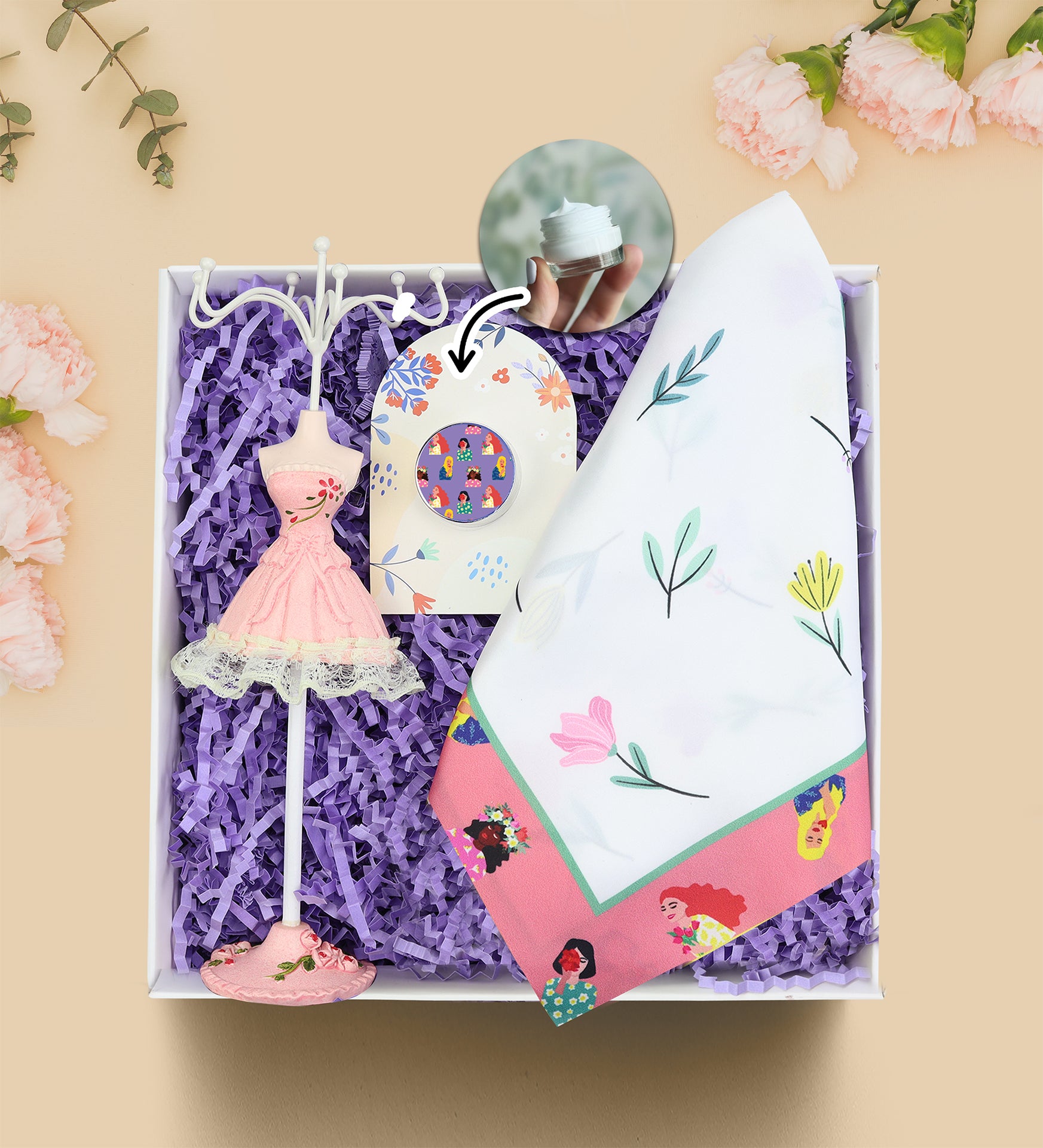 Set İçeriği : 1 Adet Kadın Figür Metal Takı Standı & 1 Adet Tasarım El Kremi & 1 Adet Fular